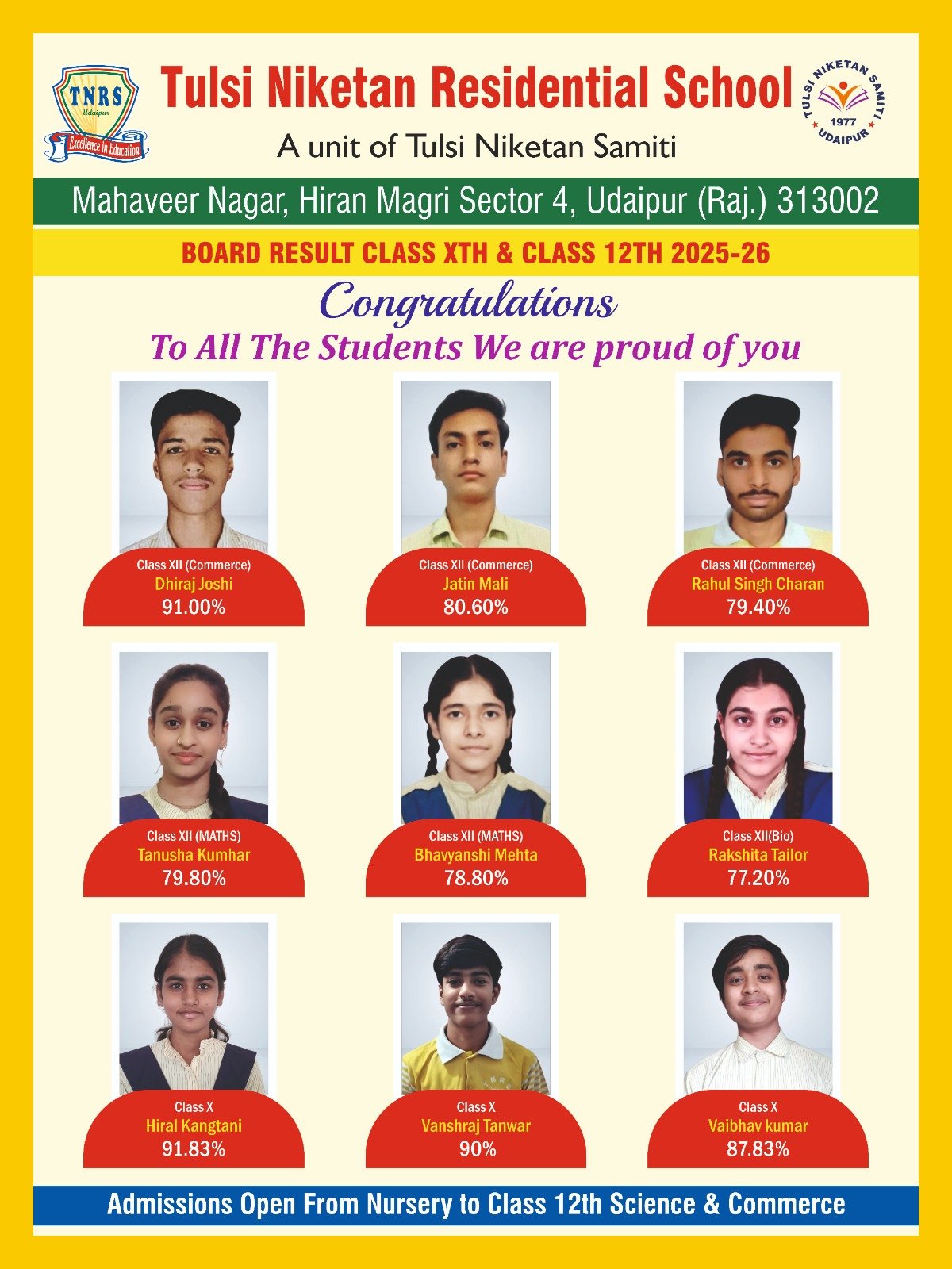 - ✓ By Post: Send a Demand Draft of ₹200 payable at Udaipur along with your contact details. We will mail the form and prospectus to you.